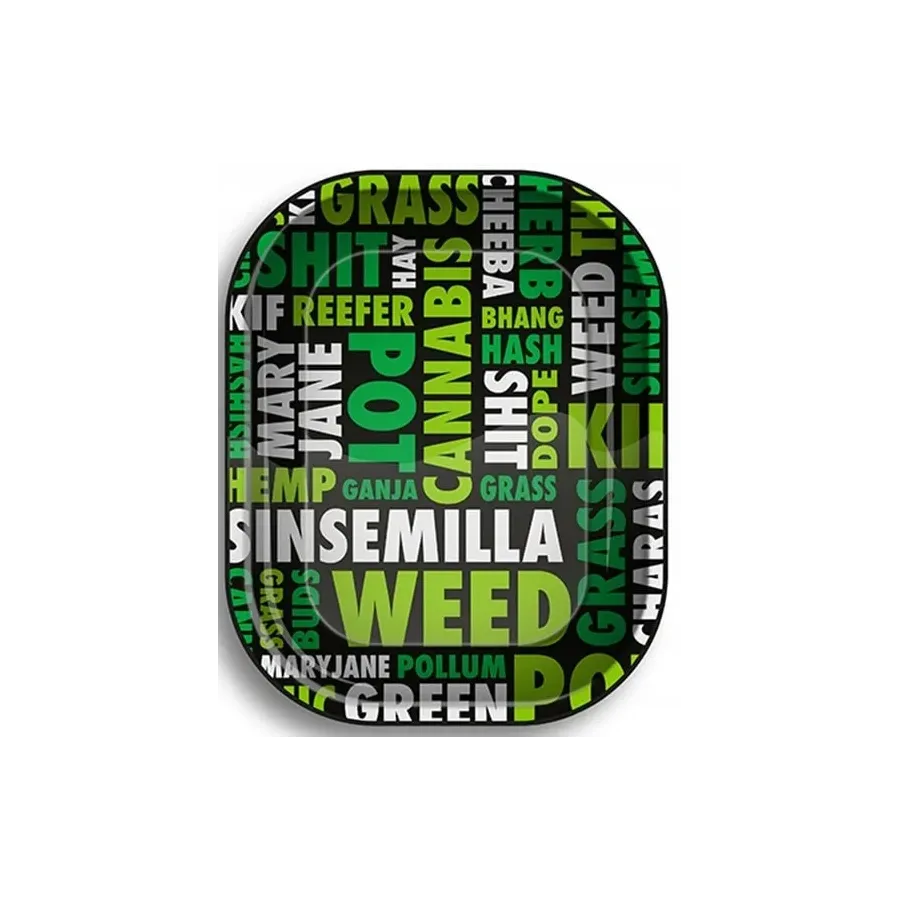 Metalowa tacka „Weed” w małym, poręcznym rozmiarze pomaga utrzymać porządek podczas mielenia, mieszania i skręcania. Podwyższony rant ogranicza rozsypywanie, a gładka powierzchnia ułatwia szybkie zebranie materiału po sesji.