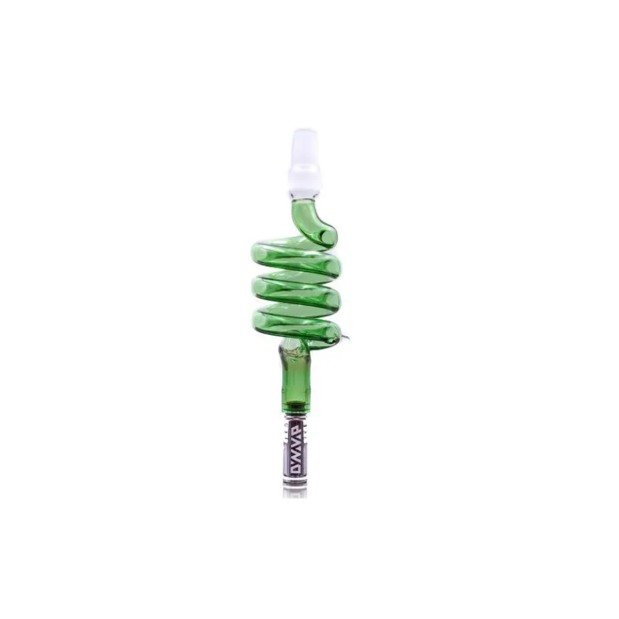 Szklany Twister 14 mm do DynaVap z serii HERO w kolorze Green. Spiralne kanały wewnątrz stema wydłużają ścieżkę pary i poprawiają jej chłodzenie, zapewniając łagodniejsze zaciągi i czysty aromat suszu CBD. Dzięki złączu 14 mm łatwo połączysz go z bubblerem lub bongiem.