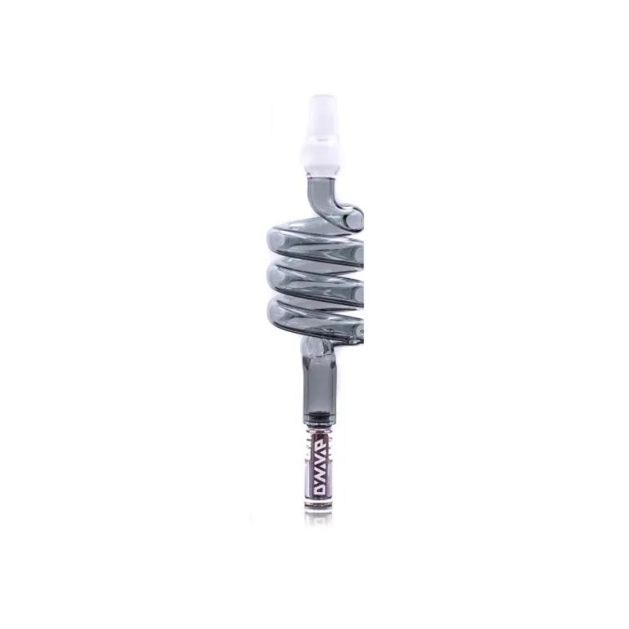 Szklany Twister 14 mm do DynaVap z serii HERO w kolorze Grey. Spiralne kanały wewnątrz stema wydłużają ścieżkę pary i zwiększają dyfuzję, co przekłada się na skuteczny dry cooling, łagodniejsze zaciągi i czysty, naturalny smak suszu CBD. Złącze 14 mm umożliwia szybkie podpięcie do bubblera lub bonga.