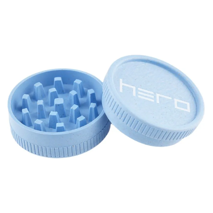 Lekki i ekologiczny młynek z włókna konopnego w kolorze Blue od HERO. Antystatyczny materiał minimalizuje przywieranie, a przemyślany układ zębów zapewnia równy, puszysty przemiał — praktyczne akcesorium do suszu CBD do codziennego użytku.