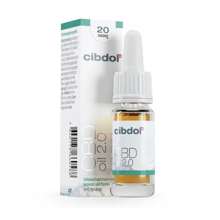 Cibdol CBD 2.0 20% to wysoko skoncentrowany olejek konopny przygotowany z legalnych, ekologicznych upraw. Formuła 2.0 jest wzbogacona o terpeny i standaryzowane ilości śladowych kannabinoidów, przy jednoczesnej zawartości THC = 0% — produkt nie wykazuje działania psychoaktywnego.