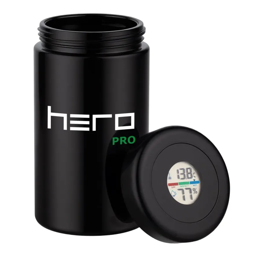 HERO PRO – Szklany Pojemnik Bezzapachowy z Higrometrem 500 ml