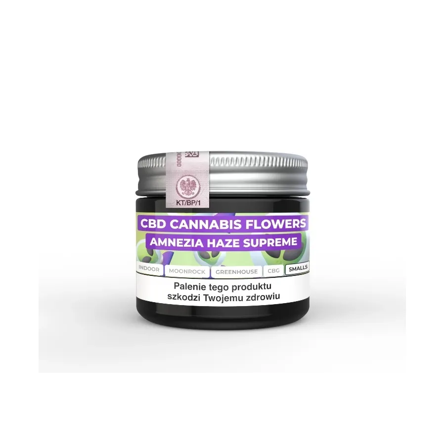 Wyselekcjonowany suszu CBD w odmianie Amnesia Haze Supreme – 20 g wysokiej jakości kwiatów konopi włóknistych z upraw szklarniowych, o zawartości THC poniżej 0,3%. Produkt pakowany z zachowaniem pełnej legalności i akcyzy, o świeżym, cytrusowo-ziołowym aromacie i naturalnym profilu kannabinoidowym (~4–6%). Idealny wybór dla miłośników suszu CBD szukających mocniejszego opakowania.